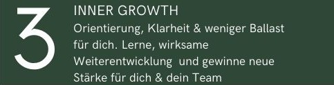 Inner Growth gibt dir die innere Stabilität, die du brauchst, dich an dir zu orientieren, um bei dir zu bleiben – auch unter den stressigsten Bedingungen – und gleichzeitig dein Unternehmen erfolgreich durch Wandel und Unsicherheit zu entwickeln.